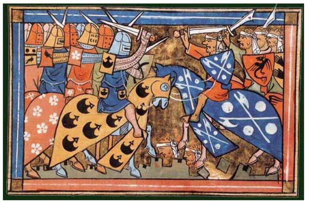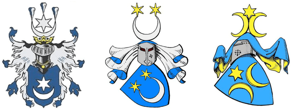 Also was? Haben all diese Ritter die Kalifen getötet? Woher haben sie so viele Kalifen genommen? Aber wenn es um einfache Sarazenen geht, warum gibt es so wenige besiegte Gegner in ein paar hundert Schlachten? Vielleicht waren unsere heldenhaften Ritter immer in den hinteren Reihen der Armee, und waren stolz auf diese Tatsache? In der Sammlung von den Siebmachers Wappen gibt es auch Wappen nur mit den Halbmonden (normalerweise nicht mehr als drei Stücke auf dem Wappen). Das Fehlen von Sternen (Nachtschlachten) ist verständlich, aber die geringe Anzahl der getöteten Sarazenen überrascht mich. Nein, ich bin nicht blutrünstig und verstehe, dass es nicht einfach ist, selbst einen Gegner zu besiegen, sondern drei – umso mehr. Aber im Siebmachers Buch sind viele Wappen nur mit Sternen ohne Halbmond. Das ist für mich völlig unverständlich! In vielen Kämpfen teilnehmen und niemands zu töten? Diese Ritter waren sehr gutherzige und liebevolle Menschen? Sie vermieden unnötige Opfer? Ich denke, es gab keine solche unter den Kreuzfahrern.