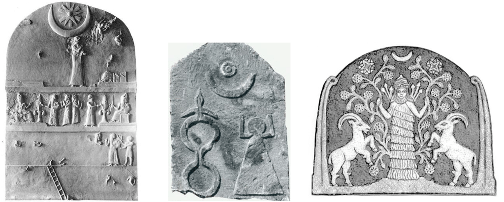 3. Die assyrische Stella, auf der die Göttin Anat mit einem Halbmond und zwei Sterne dargestellt wird.
